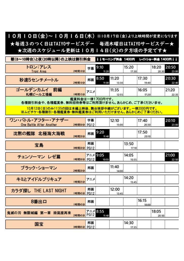 10/10(金)~10/16(木)の上映スケジュールはこちら