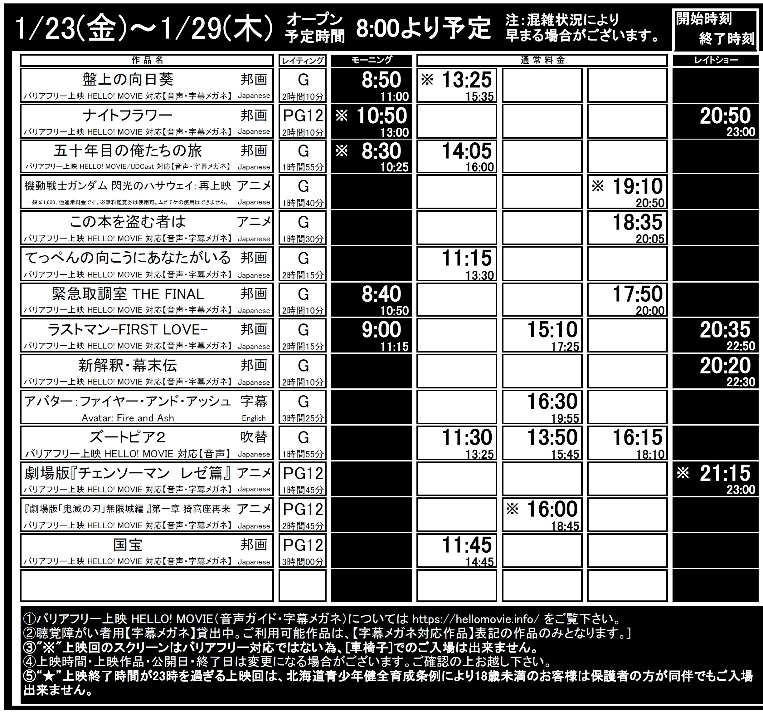 シネマ太陽函館をご利用くださいましてありがとうございます。