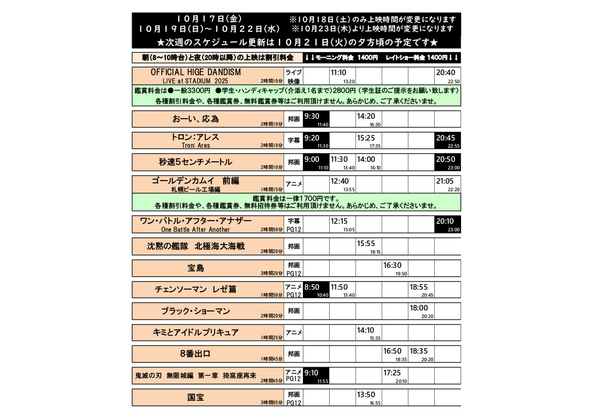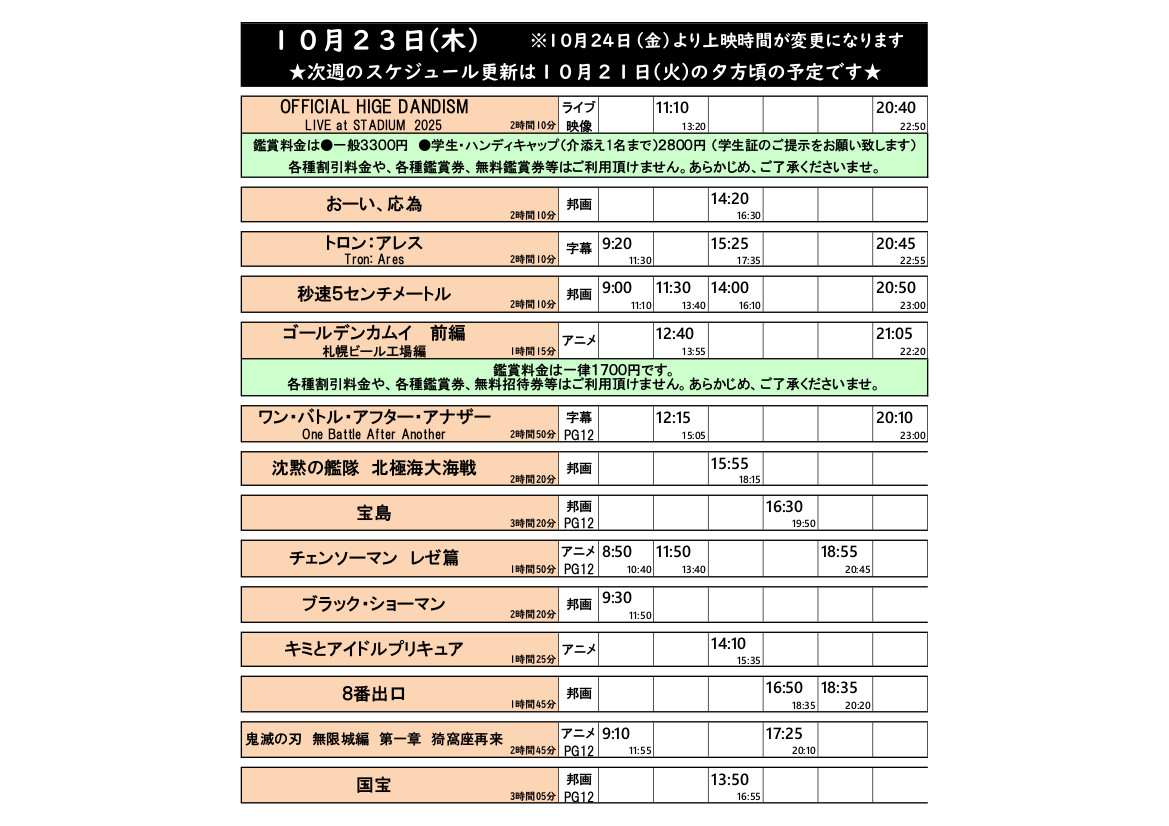 10/23(木)の上映スケジュールはこちら