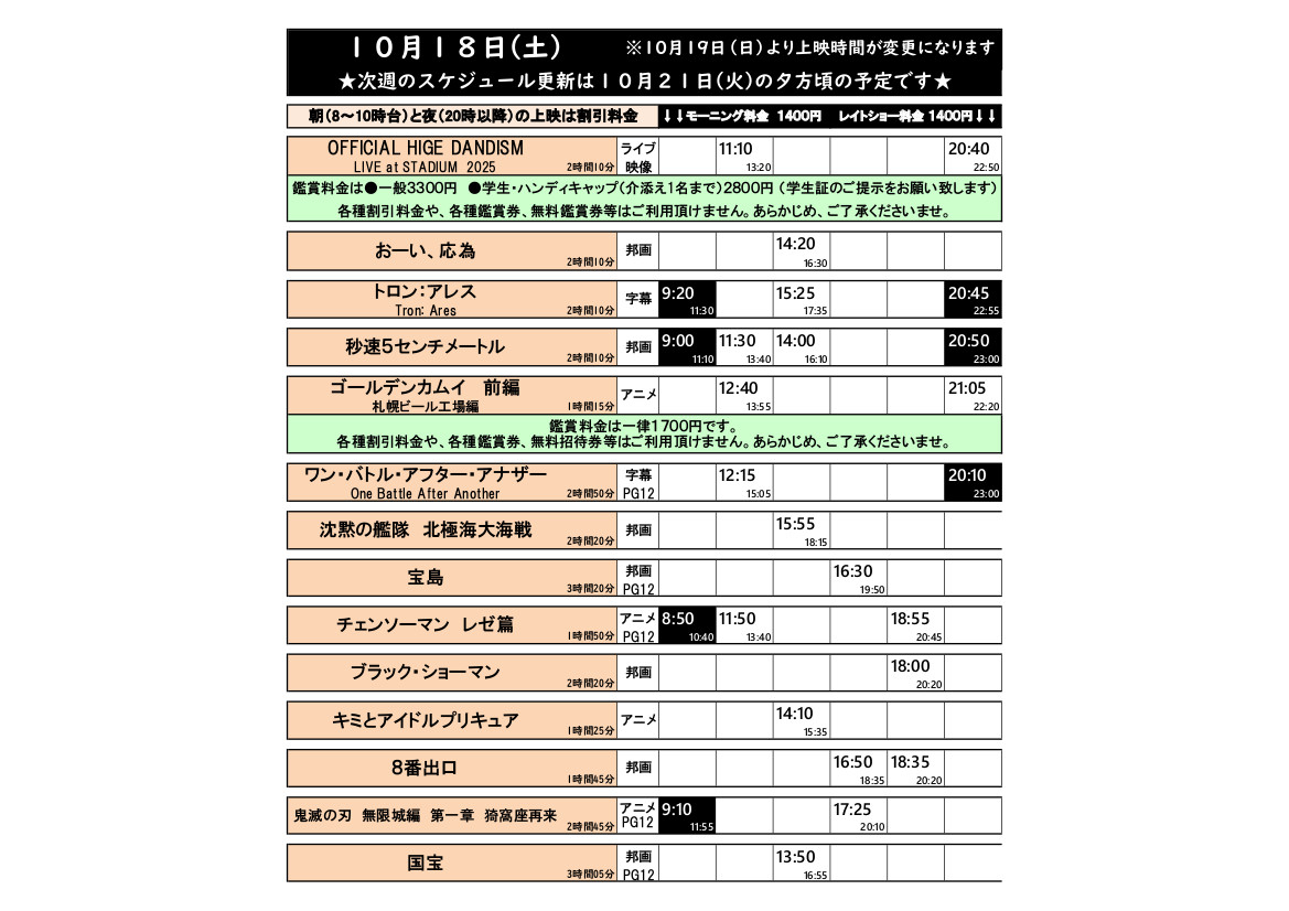 10/18(土)の上映スケジュールはこちら