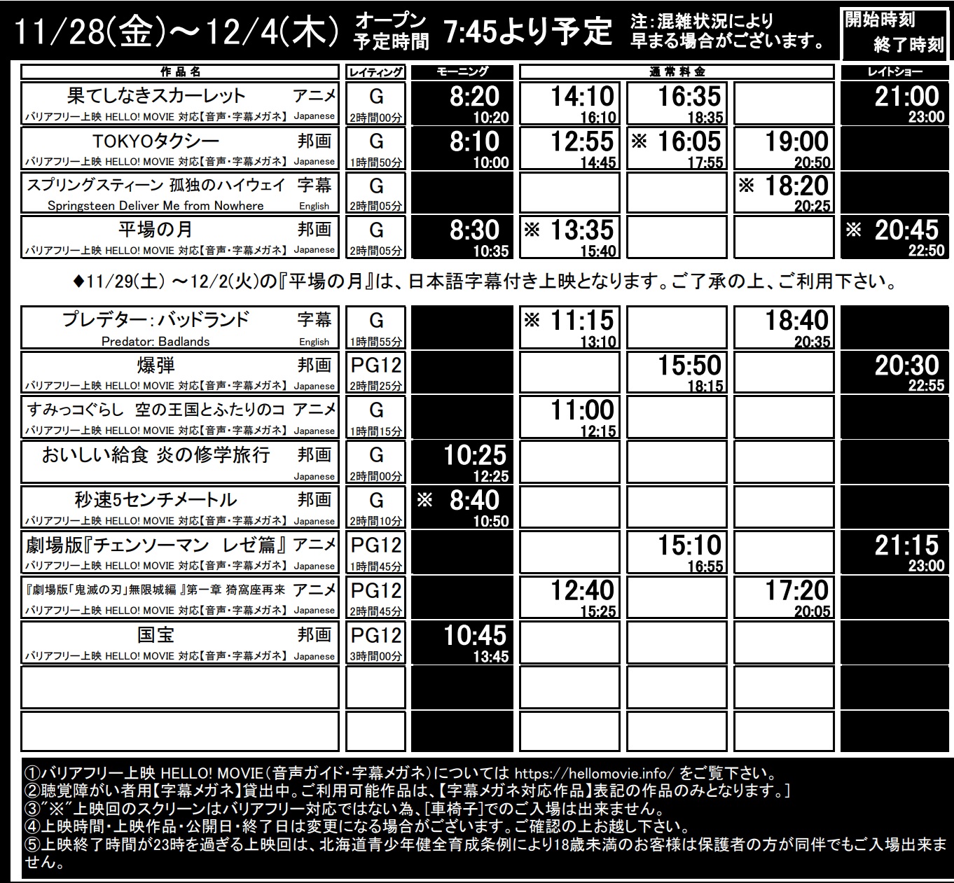 映画館シネマ太陽函館 > 函館11/28(金)~12/4(木)上映時間はこちら