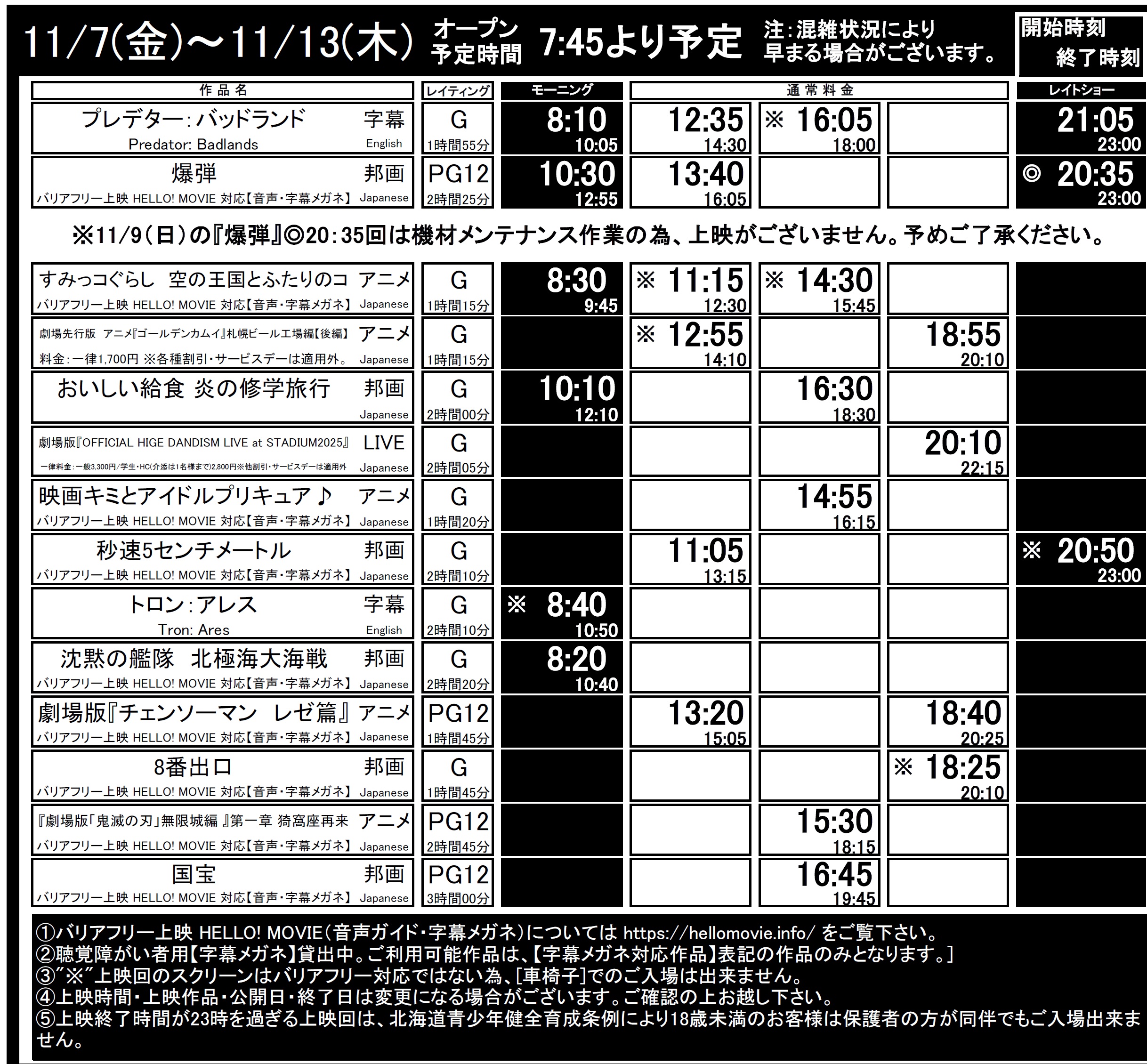 函館11/7(金)~13(木)上映時間はこちら