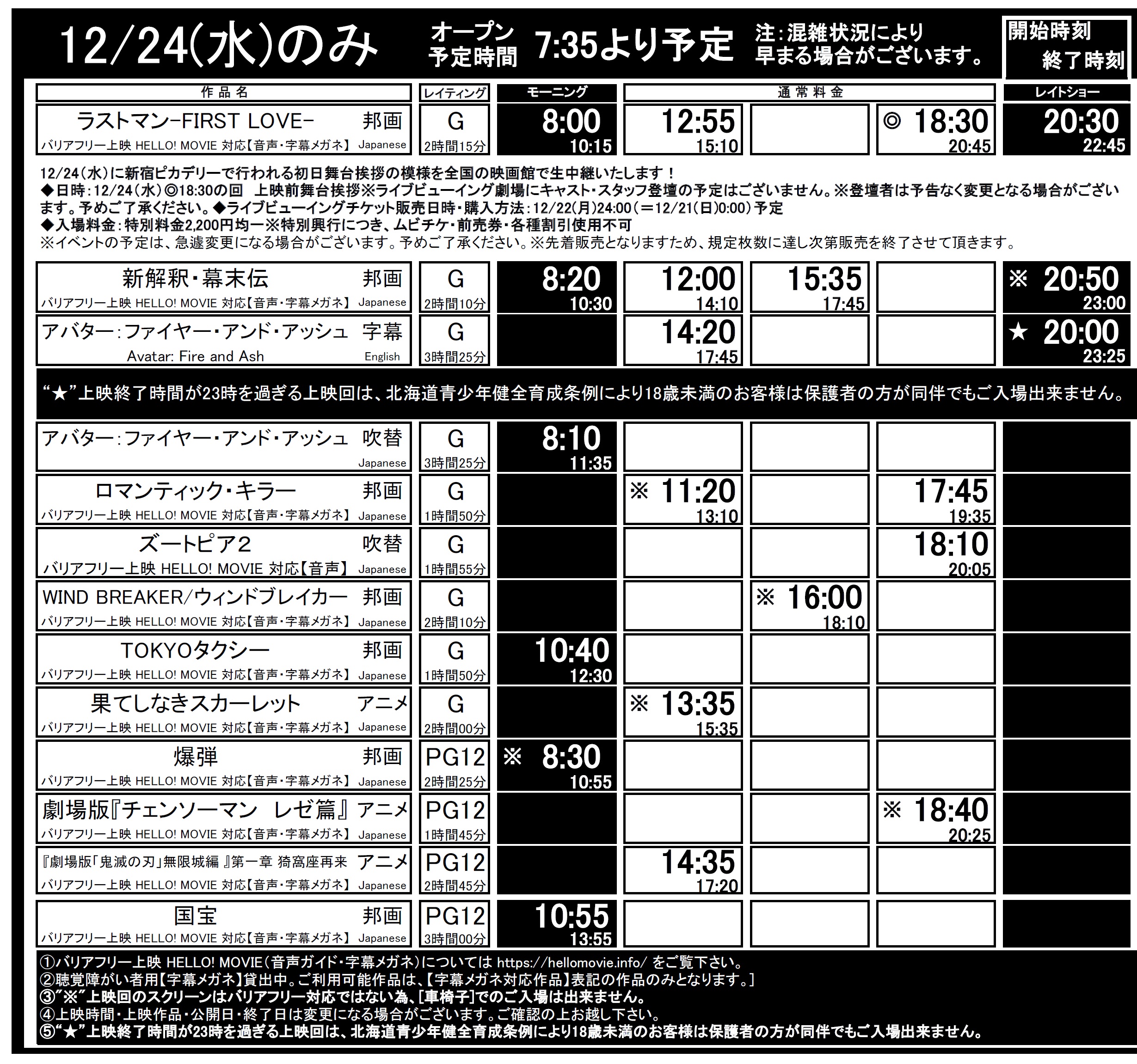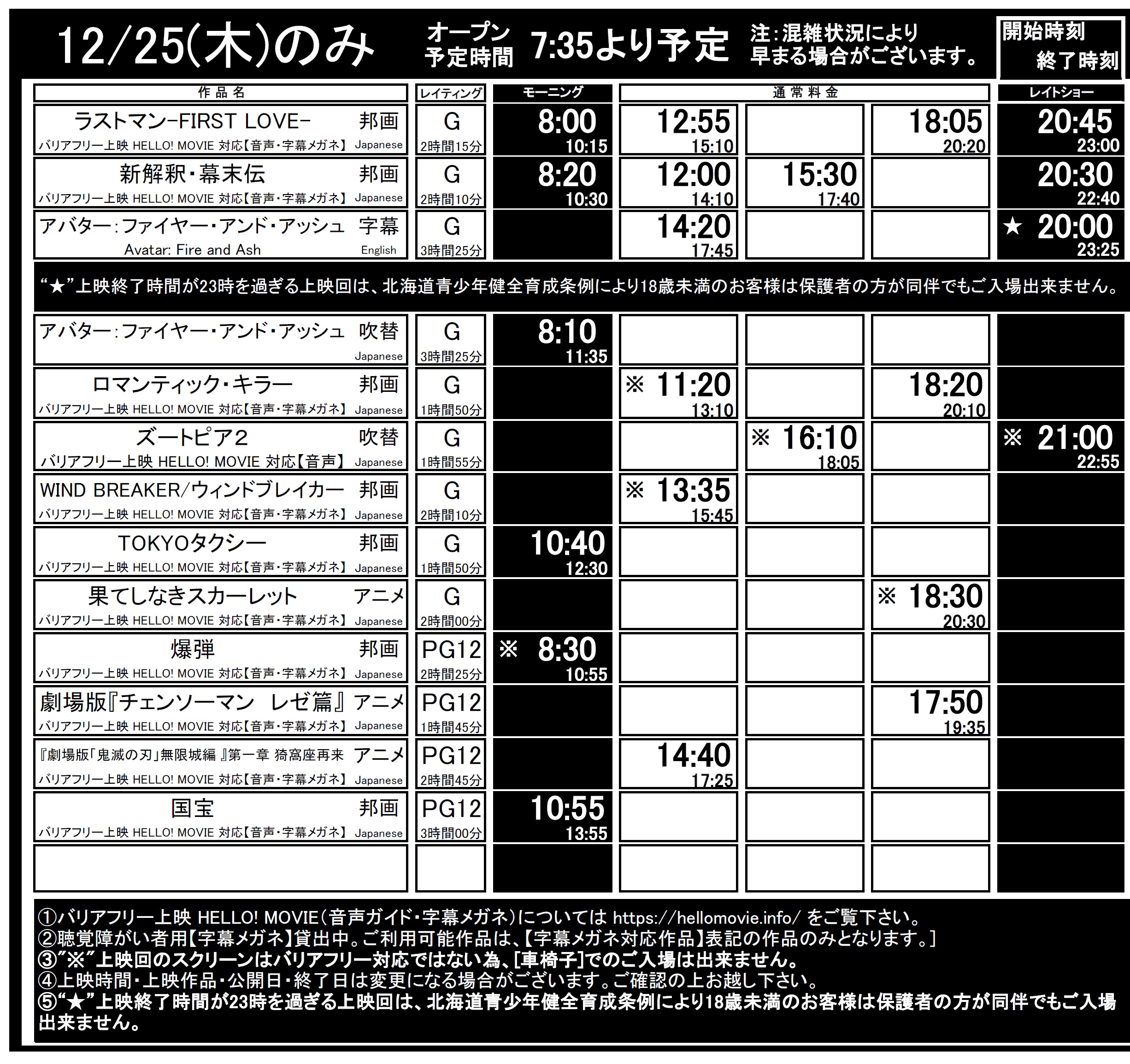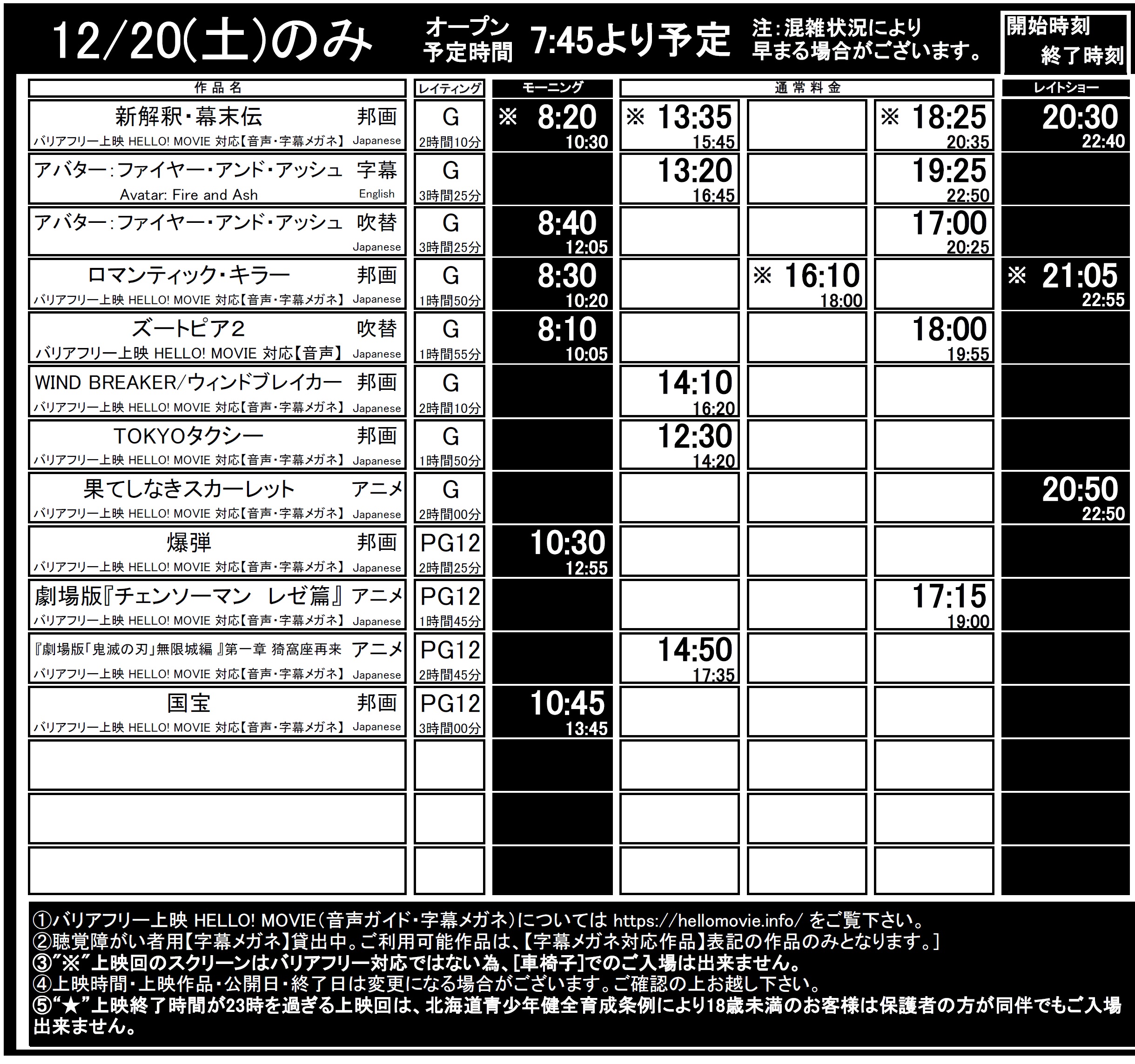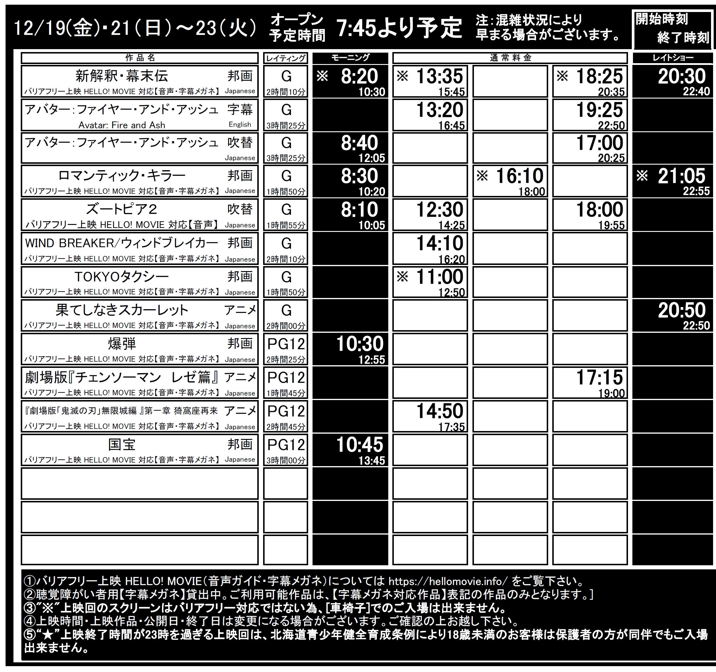 函館12/19(金)~12/25(木)上映時間はこちら