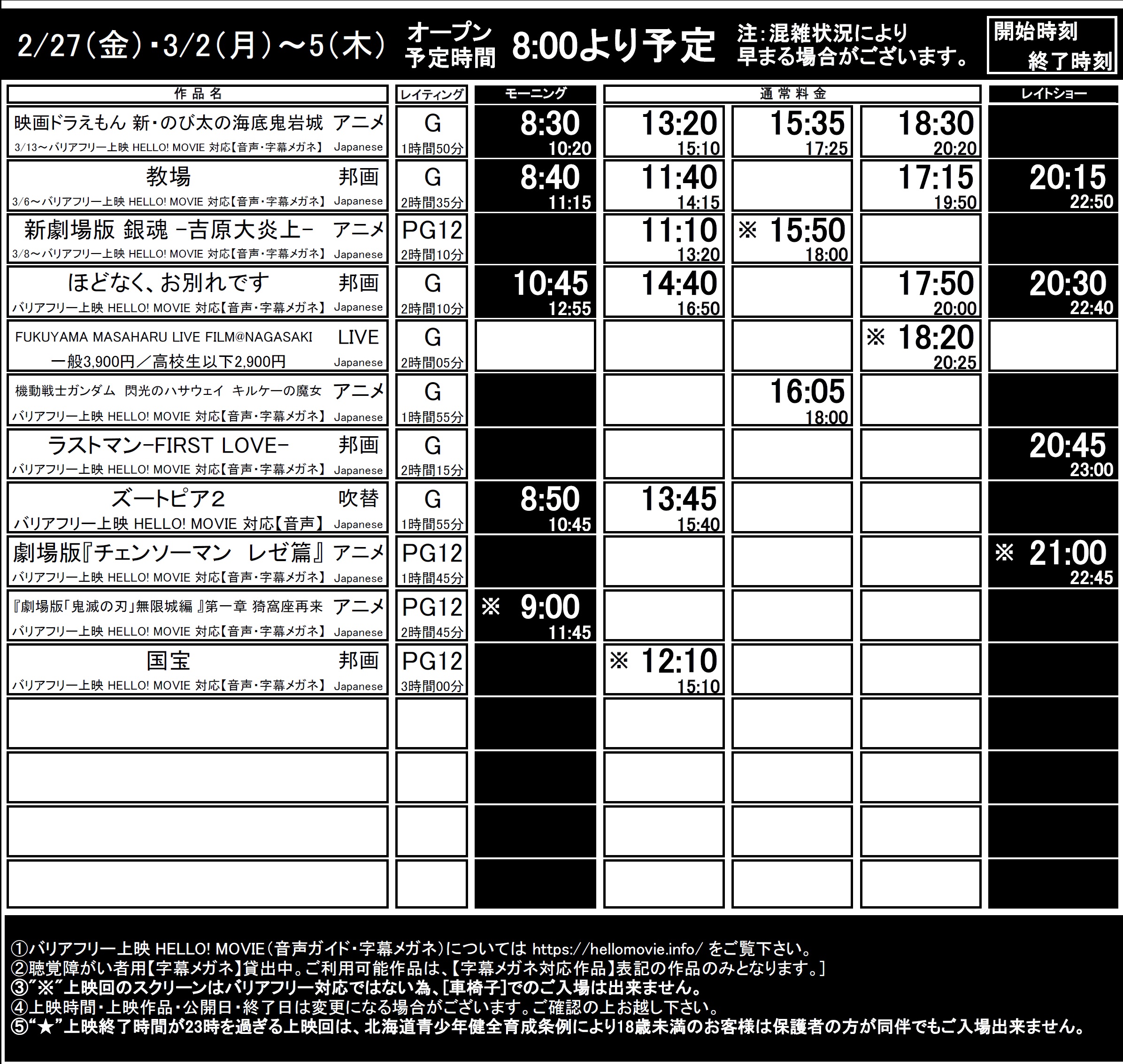 函館2/27(金)・3/2(月)~3/5(木)上映時間はこちら(毎週火曜更新)
