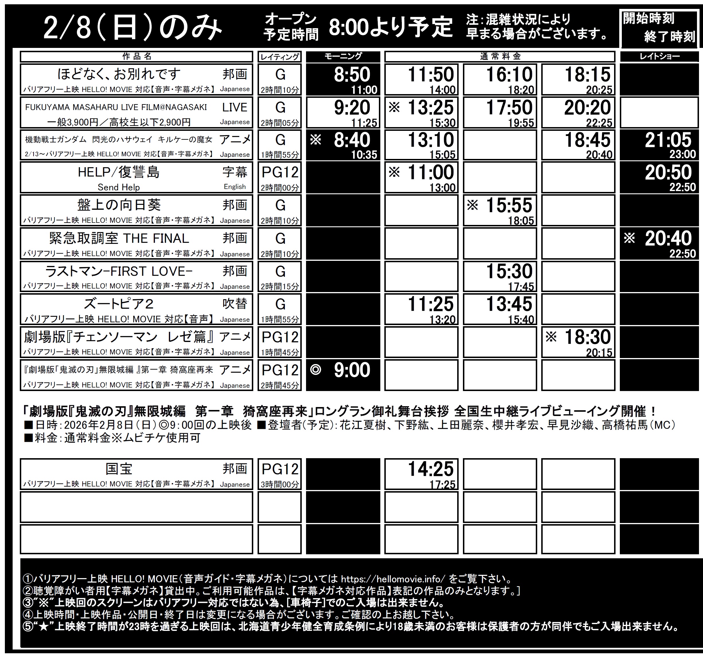 函館2/7(土)~2/12(木)上映時間はこちら※画像2枚有り(毎週火曜更新)