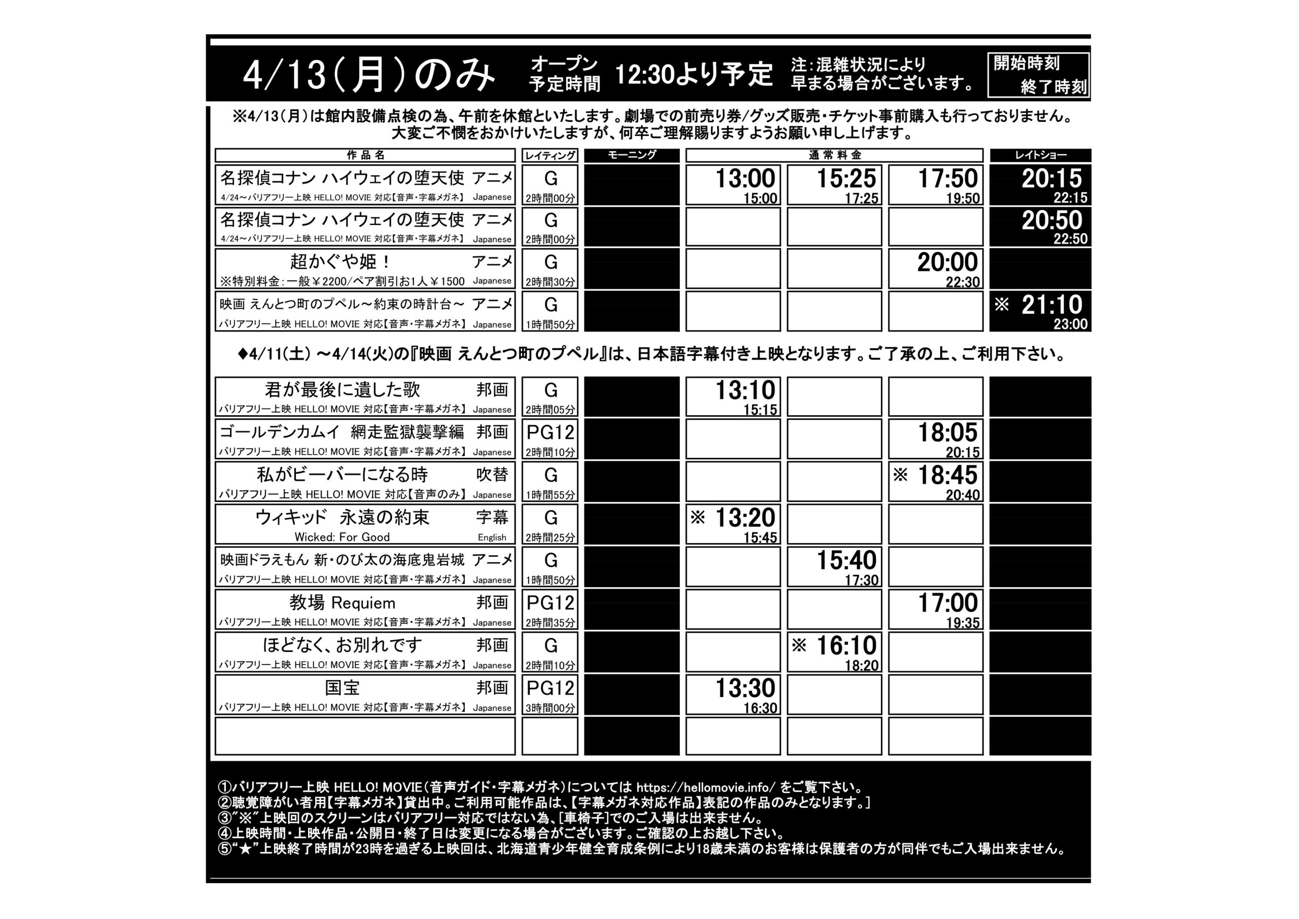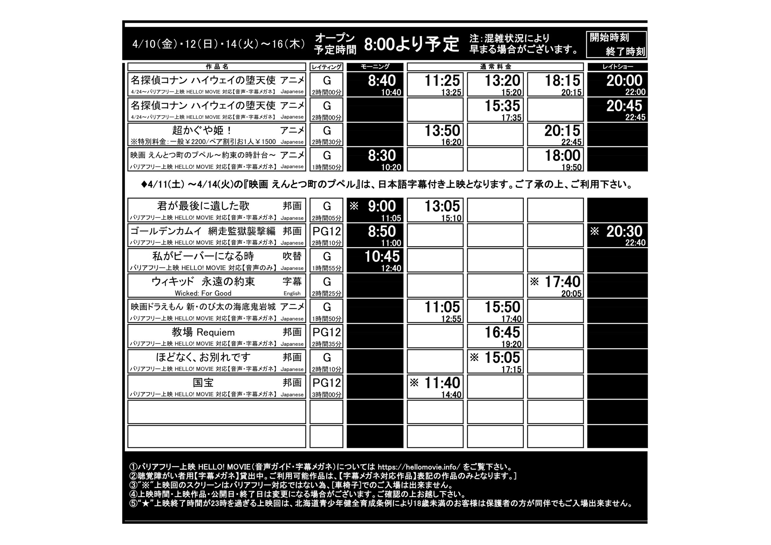 函館4/10(金)~4/16(木)上映時間はこちら※画像3枚有り(毎週火曜更新)