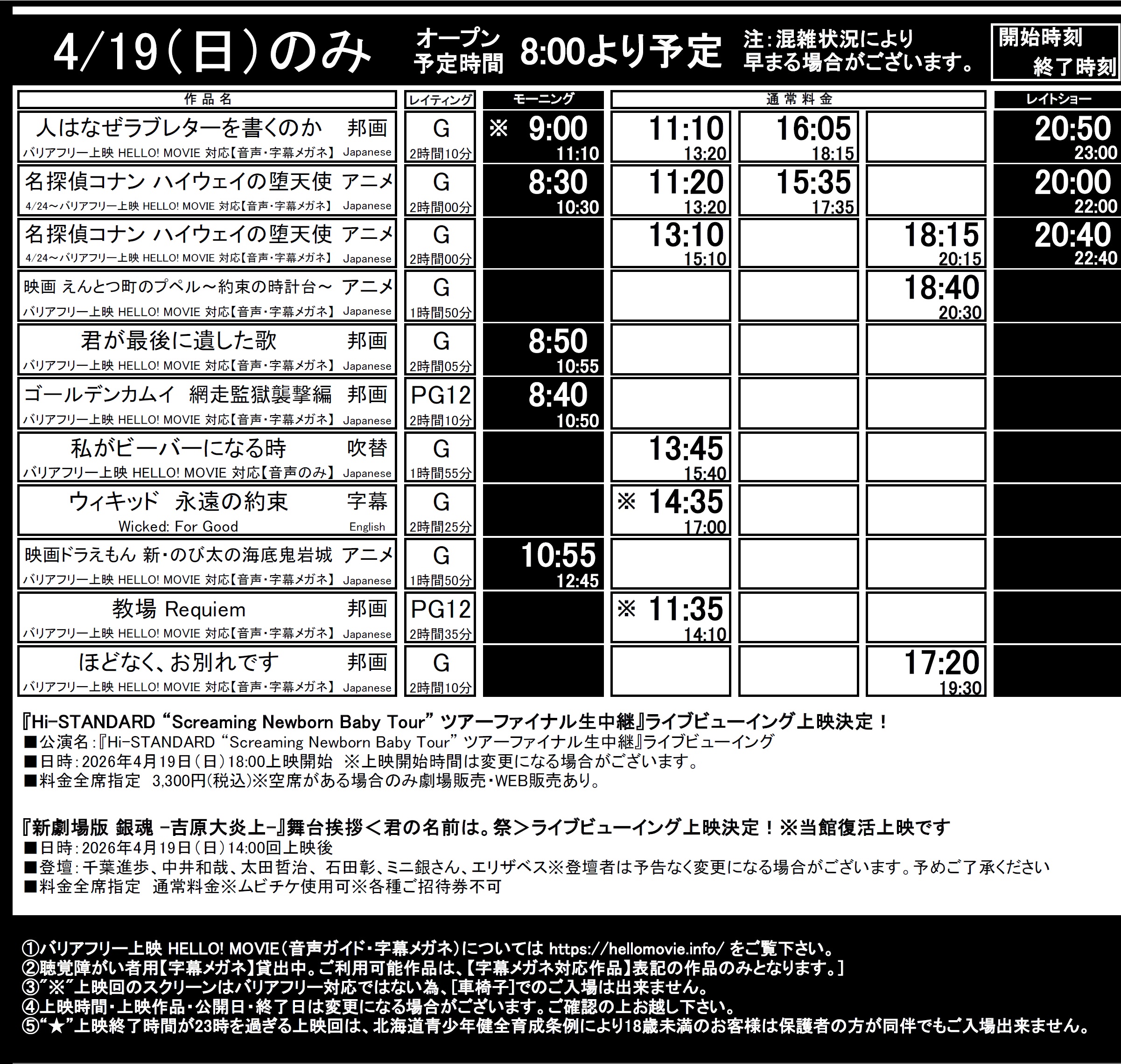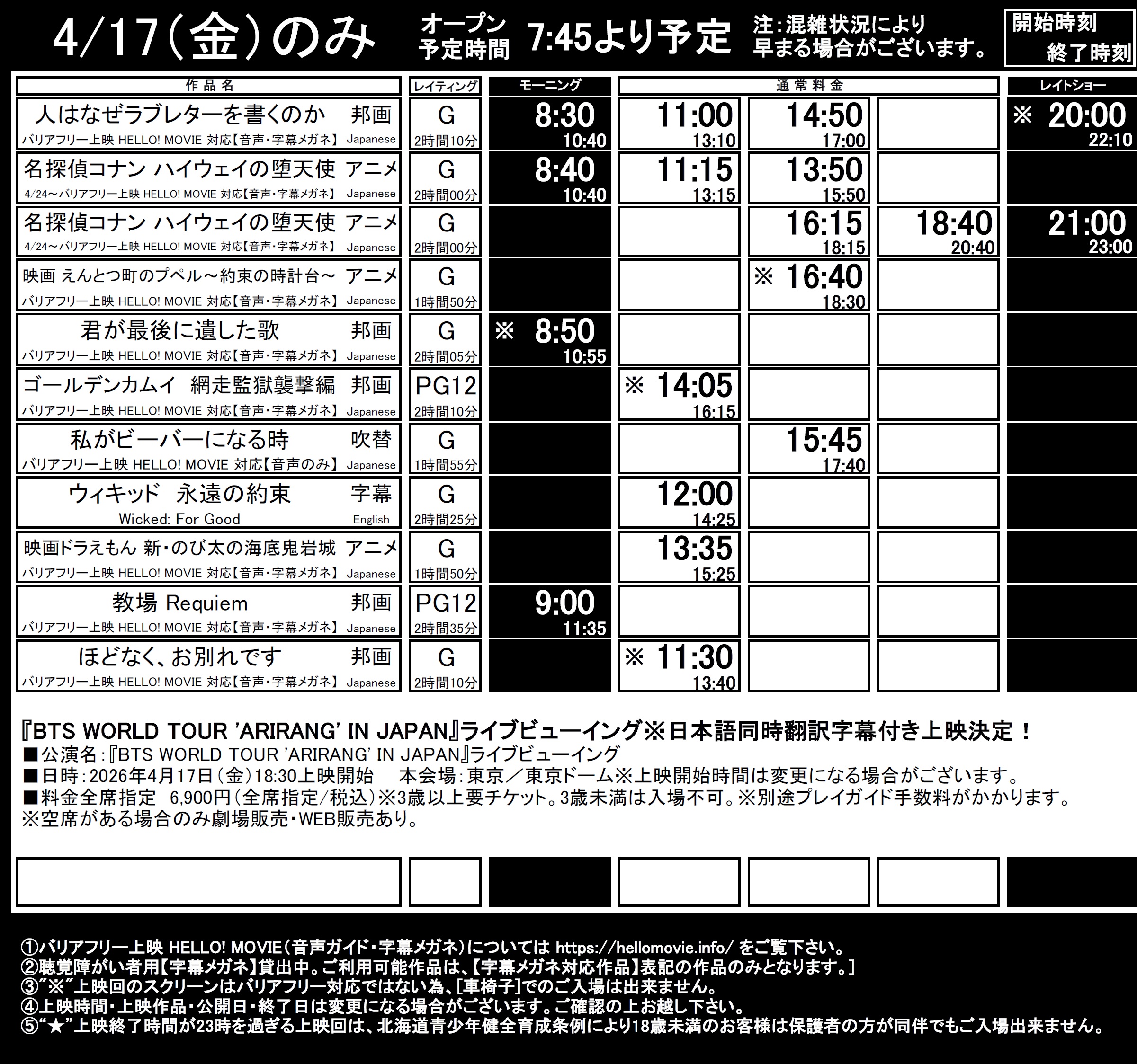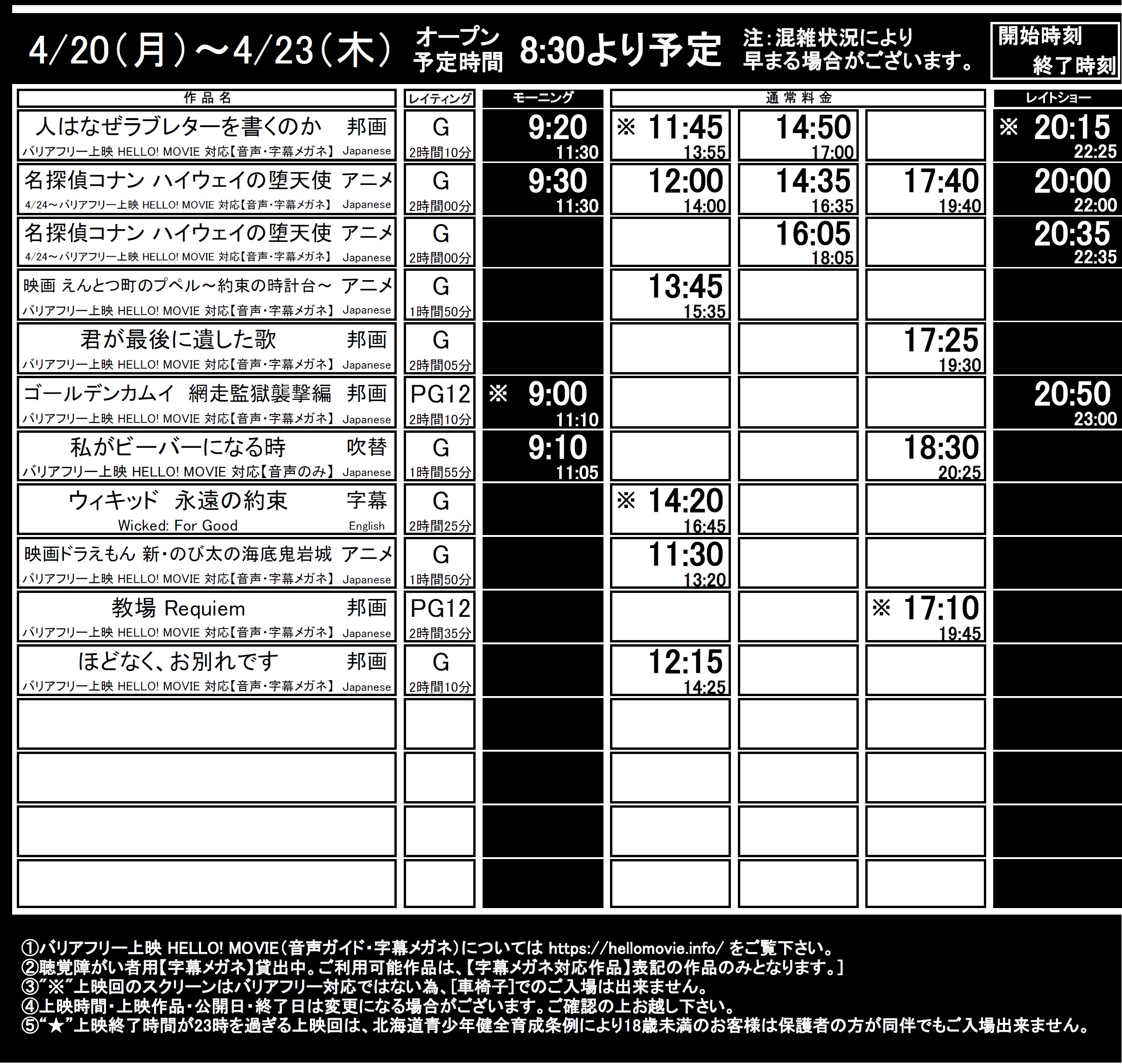 函館4/17(金)~4/23(木)上映時間はこちら※画像4枚有り(毎週火曜更新)