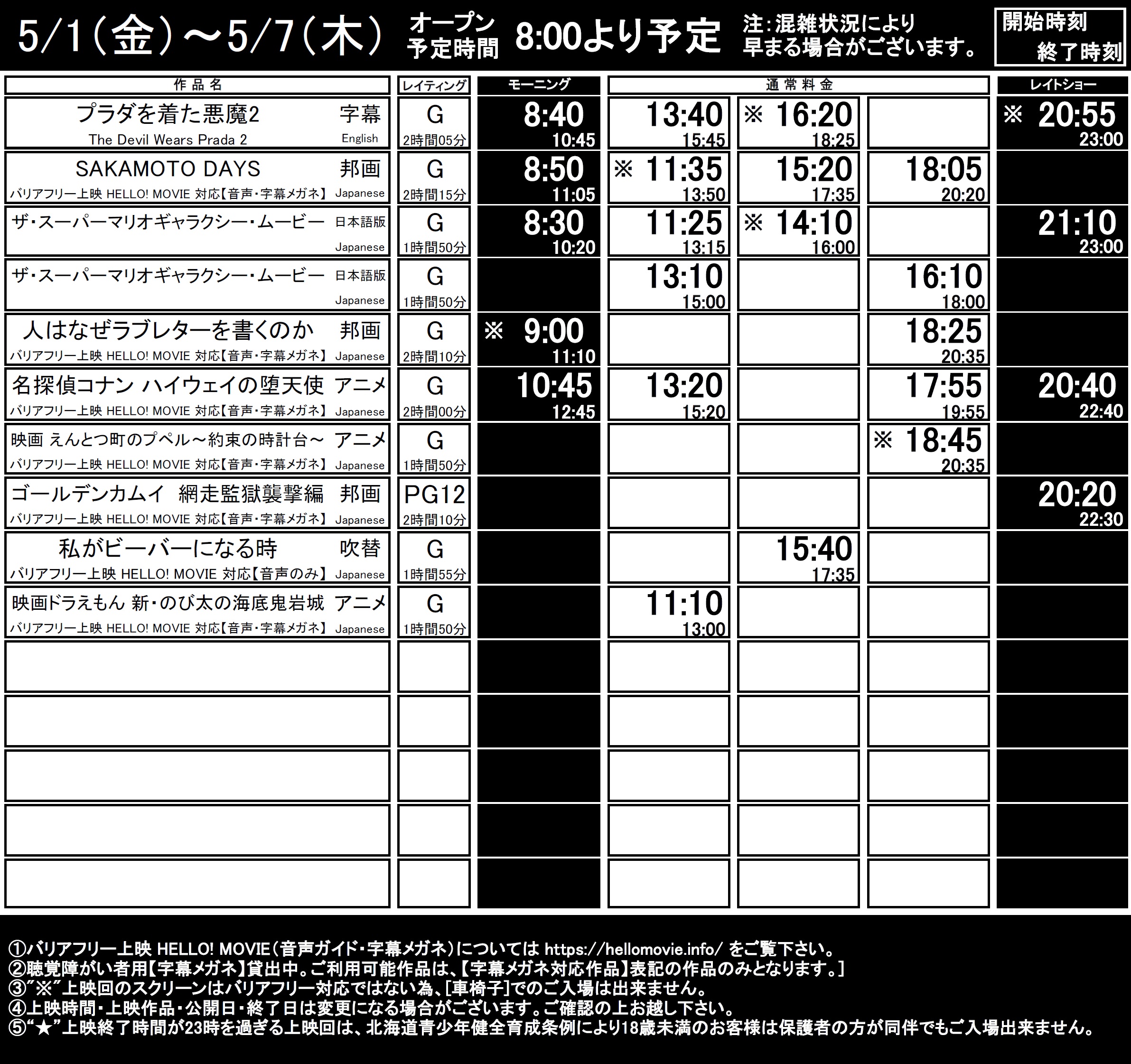 函館5/1(金)~5/7(木)上映時間はこちら(毎週火曜更新)