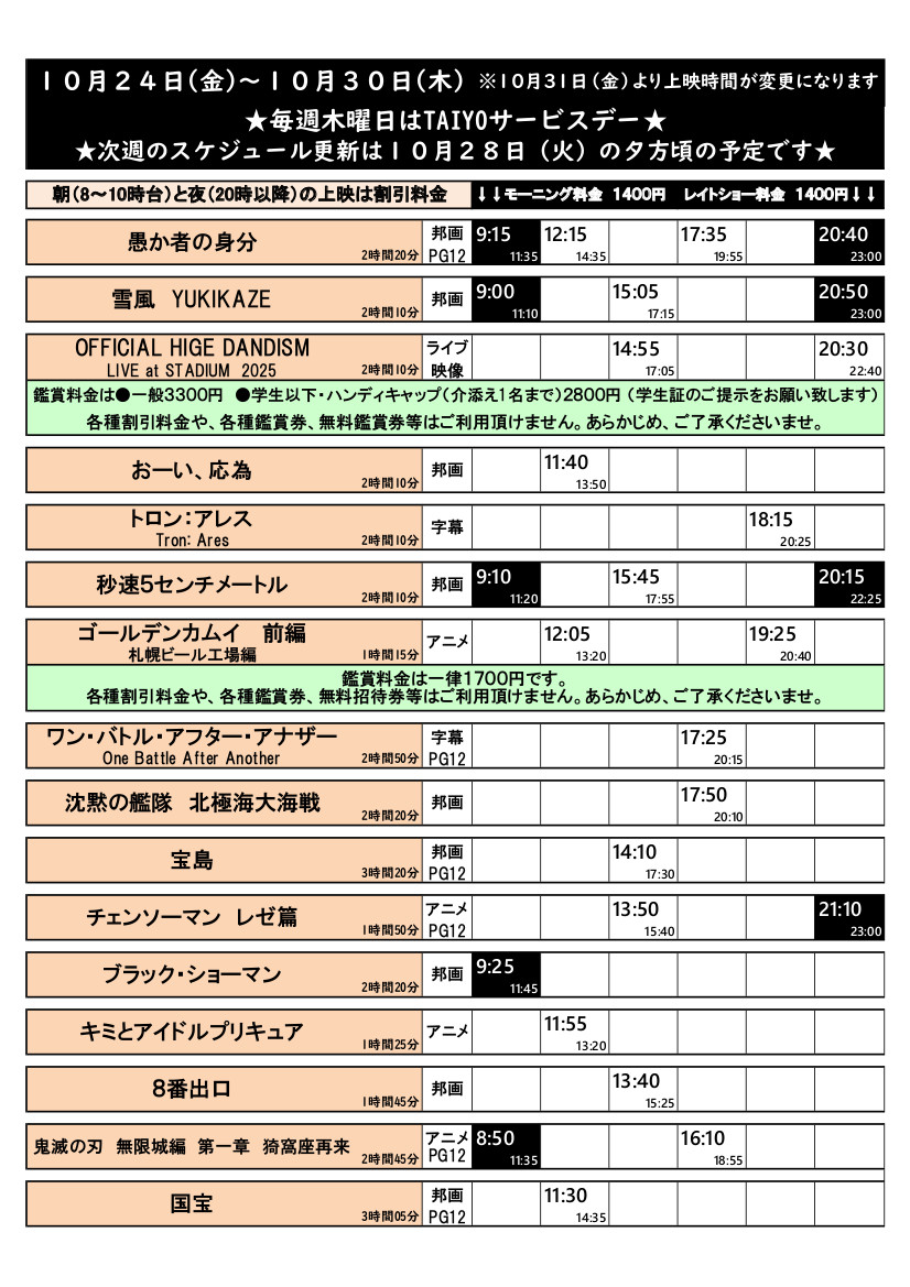 10/24(金)~10/30(木)の上映スケジュールはこちら