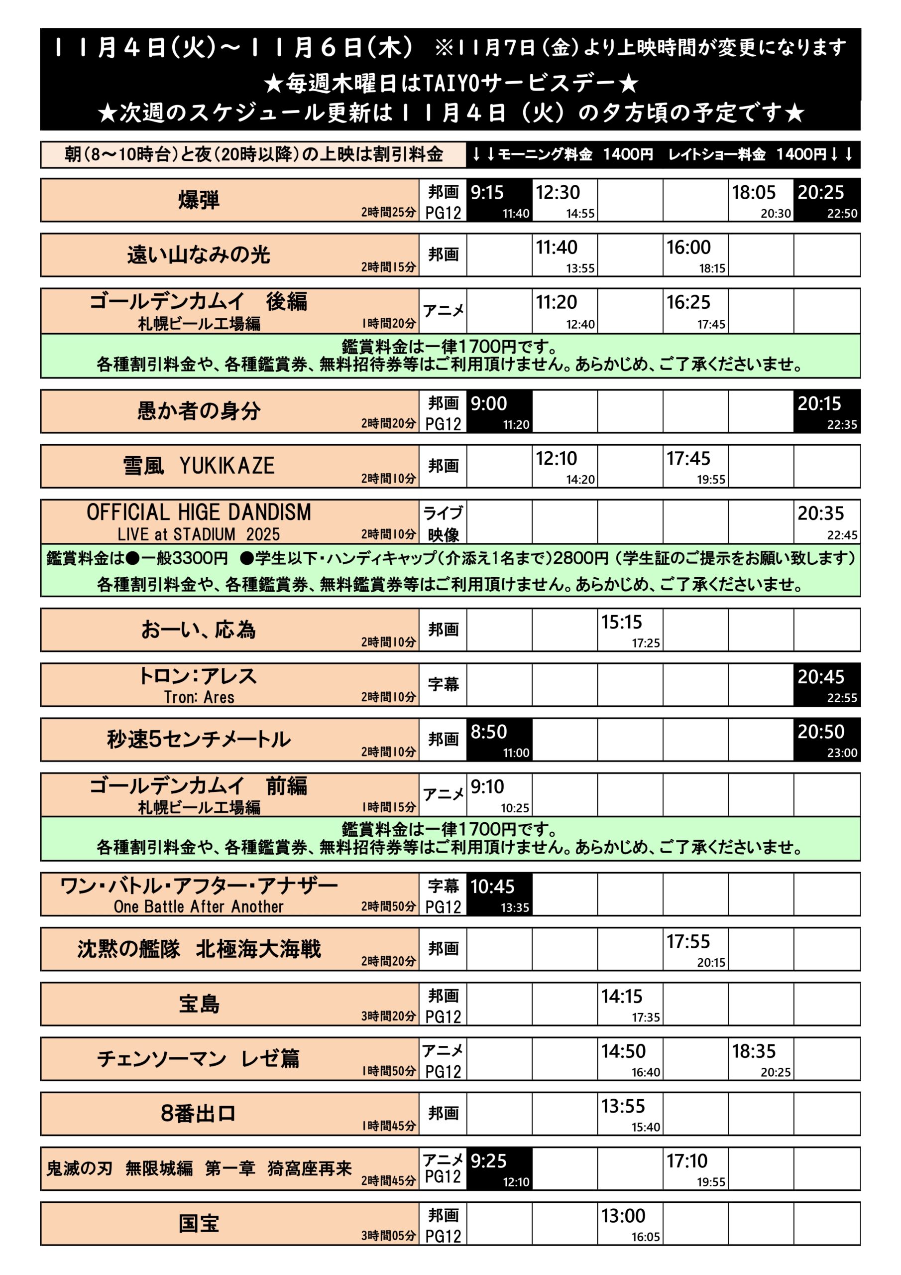 11/4(火)~11/6(木)の上映スケジュールはこちら