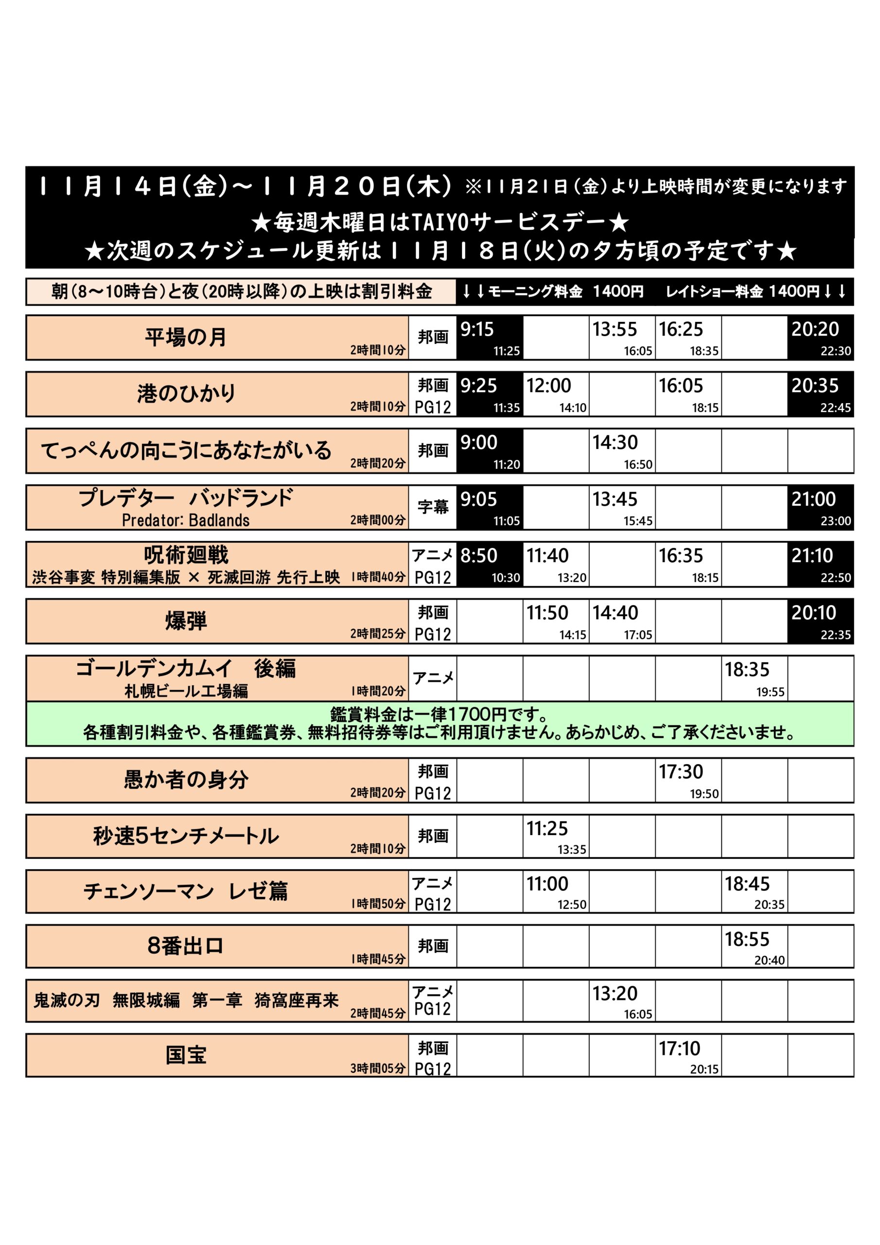 11/14(金)~11/20(木)の上映スケジュールはこちら